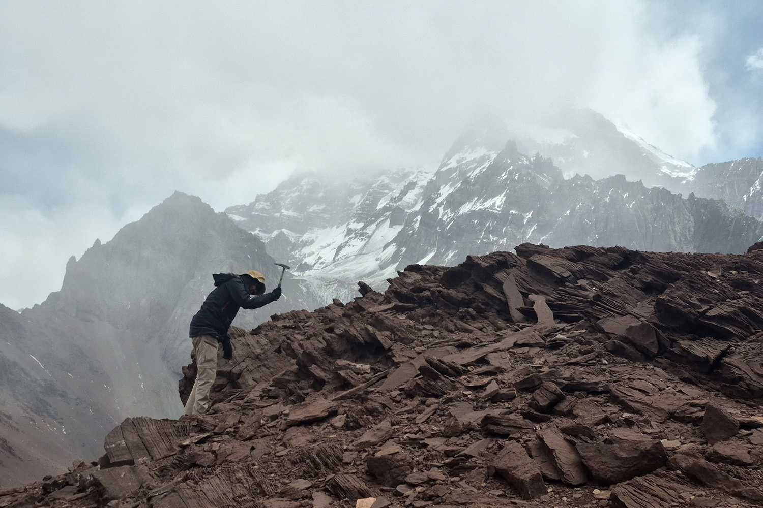 “En cada campaña se elige una quebrada y un itinerario realizable con mochila y a pie. Es decir, entramos todos juntos y luego nos vamos dispersando en la búsqueda de nuestros objetivos particulares en la quebrada y en la base del Aconcagua” explica Nicolás Peluffo, quien para su tesis doctoral estudia parte de la Era Mesozoica, particularmente las rocas cretácicas de origen continental (Cretácico Superior).