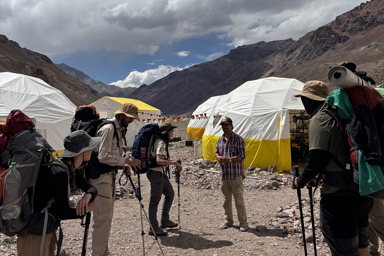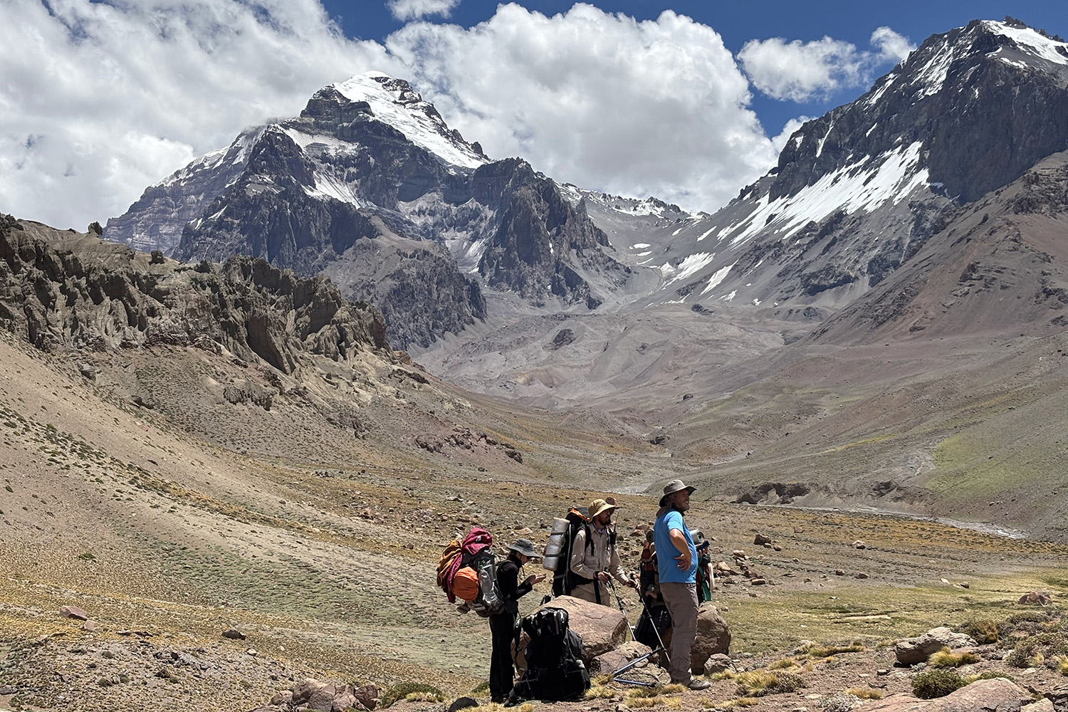 Un equipo integrado por tesistas de grado, becarios doctorales e investigadores del Instituto de Geocronología y Geología Isotópica (INGEIS, UBA–CONICET) llevó a cabo, recientemente, una campaña científica en el campamento Plaza Argentina, en la base del cerro Aconcagua. Desde allí, remontaron el río Vacas hasta el arroyo Relinchos para realizar relevamientos geológicos y estructurales en uno de los entornos de alta montaña más imponentes y de difícil acceso del país.
