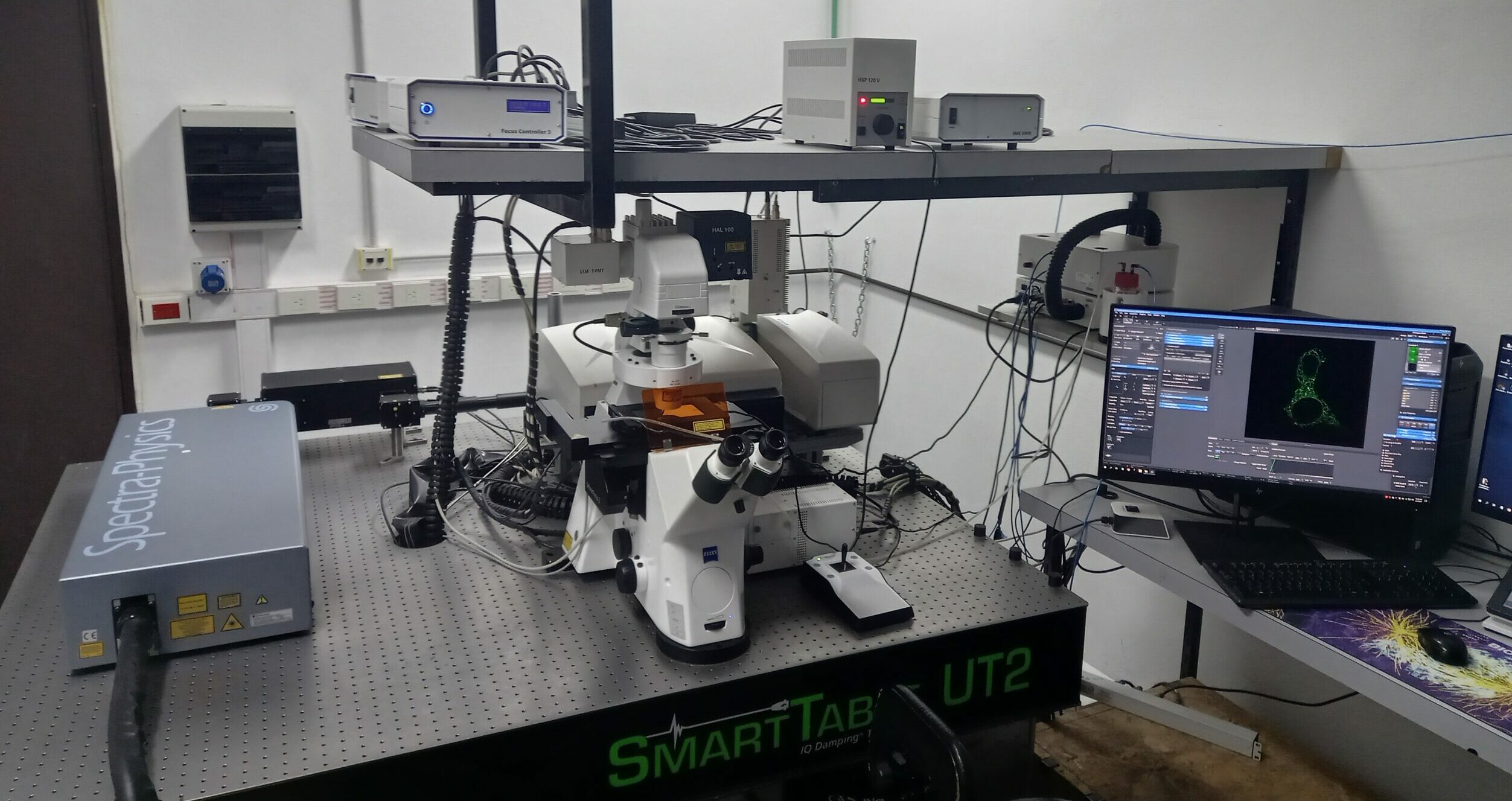 Servicios/usos: Microscopio invertido para adquisición de imágenes confocales y de resolución mejorada con AiryScan. Posee cámara de incubación para observar células vivas. Detector espectral de 32 canales con posibilidad de excitación por 2 fotones y lásers 405nm, 455nm, 488nm, 514nm, 543nm, 639nm. Se ofrece servicio de asesoría previa y asistencia en la adquisición de imágenes.